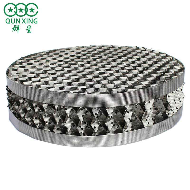 金屬孔板波紋填料具有通量大、阻力些、效率高、抗堵能力強的優(yōu)點。在精餾、吸收、吸取等單元操作中廣泛應用。
