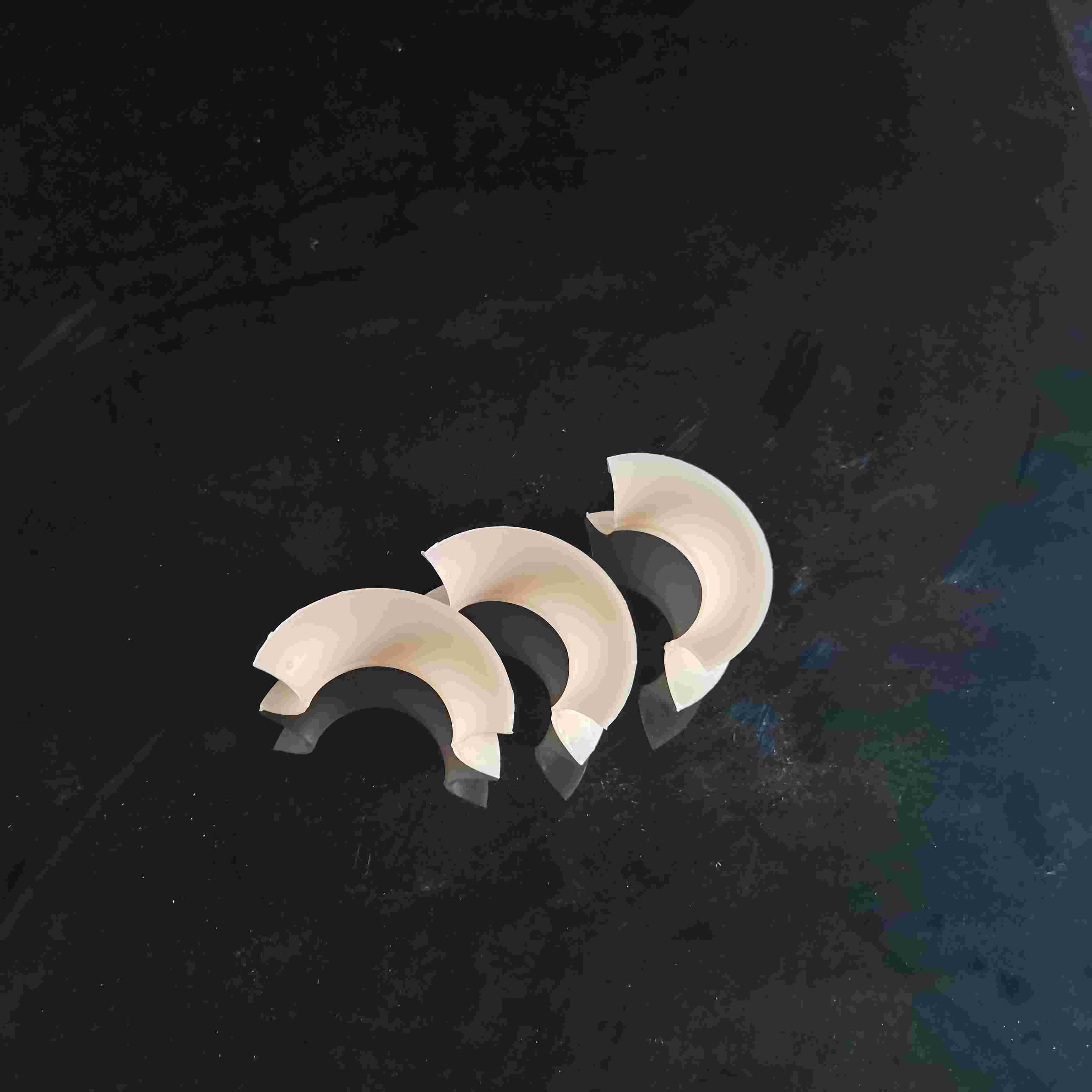 塑料矩鞍環(huán)是對(duì)弧鞍形環(huán)的改進(jìn),其主要區(qū)別在于將一對(duì)弧形面改為矩形面,且內(nèi)外曲率半徑不同,從而避免了容易疊套的缺點(diǎn),使床層孔隙率均勻,改善了液體分布性能。塑料矩鞍環(huán)液體分布性能與拉西環(huán)或弧鞍形環(huán)相比,其液泛點(diǎn)高,壓降和傳質(zhì)單元高度較低。